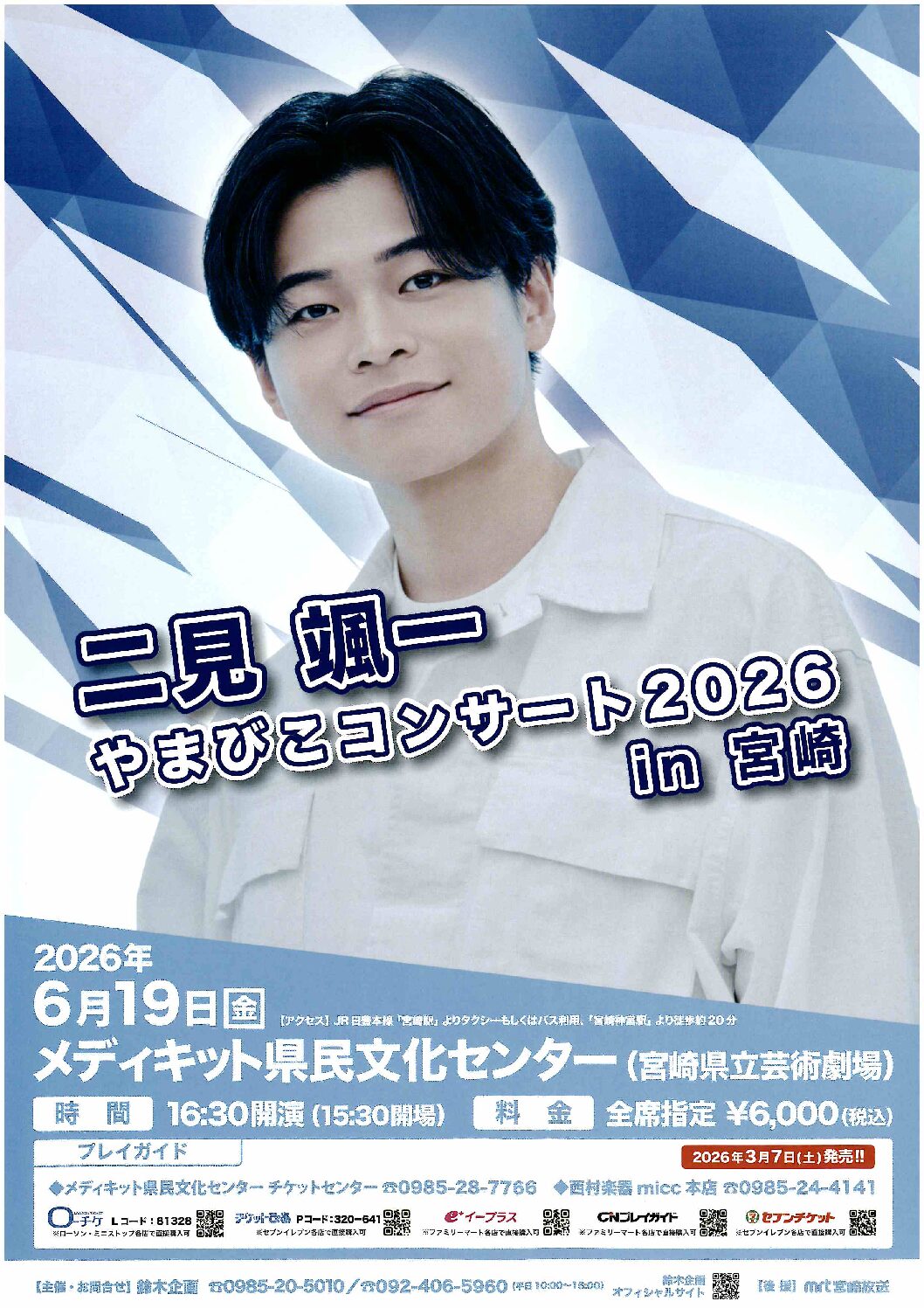 音楽劇場主催音楽祭 託児サービス 第31回宮崎国際音楽祭 「気軽にクラシック♪」~500円コンサートの日 2026年05月03日(日・祝) メディキット県民文化センター コンサート① 開場10:00/開演10:30 ~ コンサート⑥ 開場16:15/開演16:45 駐車場の混雑が予想されます 詳しく見る