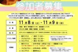 <blockquote class="wp-embedded-content" data-secret="15PKPFm5e8"><a href="https://miyazaki-ac.jp/event/2025/29985/">パイプオルガン見学・体験会「オルガンふしぎ発見!」</a></blockquote><iframe sandbox="allow-scripts" security="restricted" src="https://miyazaki-ac.jp/event/2025/29985/embed/#?secret=15PKPFm5e8" width="600" height="400" title="“パイプオルガン見学・体験会「オルガンふしぎ発見!」” — メディキット県民文化センター" data-secret="15PKPFm5e8" frameborder="0" marginwidth="0" marginheight="0" scrolling="no" class="wp-embedded-content"></iframe><script type="text/javascript"> /* <![CDATA[ */ /*! This file is auto-generated */ !function(d,l){"use strict";l.querySelector&&d.addEventListener&&"undefined"!=typeof URL&&(d.wp=d.wp||{},d.wp.receiveEmbedMessage||(d.wp.receiveEmbedMessage=function(e){var t=e.data;if((t||t.secret||t.message||t.value)&&!/[^a-zA-Z0-9]/.test(t.secret)){for(var s,r,n,a=l.querySelectorAll('iframe[data-secret="'+t.secret+'"]'),o=l.querySelectorAll('blockquote[data-secret="'+t.secret+'"]'),c=new RegExp("^https?:$","i"),i=0;i<o.length;i++)o[i].style.display="none";for(i=0;i<a.length;i++)s=a[i],e.source===s.contentWindow&&(s.removeAttribute("style"),"height"===t.message?(1e3<(r=parseInt(t.value,10))?r=1e3:~~r<200&&(r=200),s.height=r):"link"===t.message&&(r=new URL(s.getAttribute("src")),n=new URL(t.value),c.test(n.protocol))&&n.host===r.host&&l.activeElement===s&&(d.top.location.href=t.value))}},d.addEventListener("message",d.wp.receiveEmbedMessage,!1),l.addEventListener("DOMContentLoaded",function(){for(var e,t,s=l.querySelectorAll("iframe.wp-embedded-content"),r=0;r<s.length;r++)(t=(e=s[r]).getAttribute("data-secret"))||(t=Math.random().toString(36).substring(2,12),e.src+="#?secret="+t,e.setAttribute("data-secret",t)),e.contentWindow.postMessage({message:"ready",secret:t},"*")},!1)))}(window,document); /* ]]> */ </script>